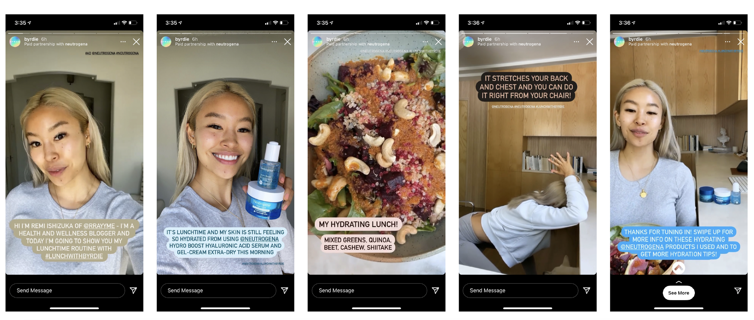 Neutrogena Hydro Boost was also prominently displayed beyond Twitch. There were five YouTube integrations (i.e. 30-60 second mentions of the product line that were slotted into the creator’s traditional YouTube content) and Lulu’s “day in the life” dedicated vlog that featured the products in her morning and night skincare routines